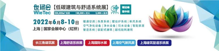 由中华环保联合会,中国节能协会与上海荷祥会展联合主办的世环会【低碳建筑与舒适系统展】及旗下系列展上海国际水展、上海舒适系统展、上海空气新风展、上海建筑管道系统展、长三角建筑产业化展,将于2022年6月8至10日在上海国家会展中心(虹桥)隆重召开,展会现场将集中展示新风系统、空气净化设备、除湿系统、三恒五恒、暖通空调、热泵系统、壁挂炉系统、净水设备、饮水设备、智能家居、管道系统、装配式建筑、超低能耗建筑等相关产品。
