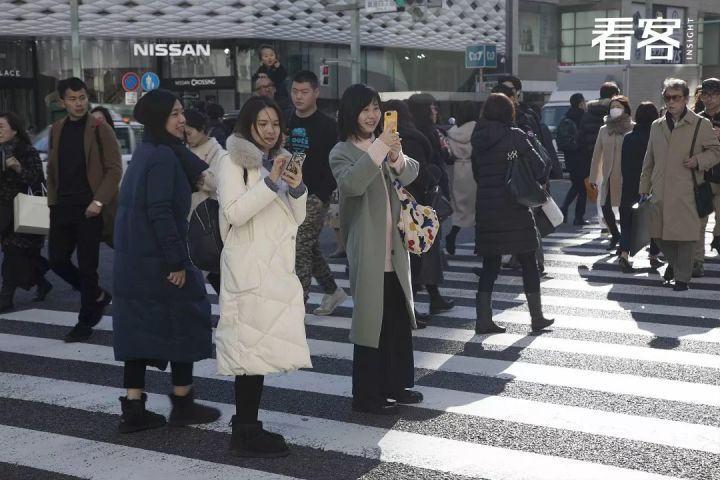 图为东京银座,两名中国游客掏出手机拍照留念。除了爆买马桶盖,近年国人来旅游也开始留意房产广告。而在另一位房地产老板牛总的观察里,2012-2015年间买房的那批中国人,大多是喜欢日本的文化和生活,或和日本有过渊源。