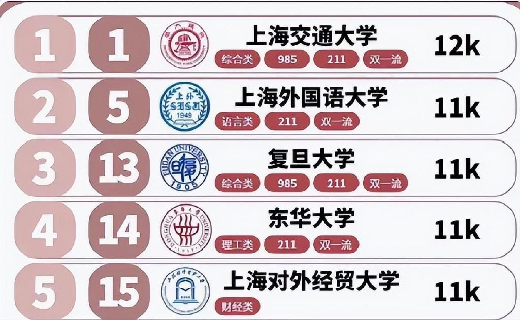 和211名校东华大学是持平的,甚至和985名校复旦的毕业生平均薪酬情况都是一样的,上海外国语大学生位列第2的位置,毕业生的平均薪酬情况也是11K。